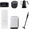 用途寮や事務所、休憩室などに。会社 オフィス 事務室 休憩室 仮眠室 ラウンジ 給湯室 寮 合宿 施設 宿泊 民泊 ホテル 旅館 宿舎 新生活 引越し 単身赴任 大学入学 スターターセット 家電セット 冷蔵庫 洗濯機仕様【冷蔵庫】幅50×奥行56×高さ142.2cm●容量:173L(冷蔵室121L/冷凍室52L)●年間消費電力量:250kWh/年(50Hz/60Hz)【掃除機】スティック時サイズ:幅22.6×奥行10.3×高さ100cm●ハンディ時サイズ:幅7.5×奥行7.5×高さ46cm●わずか870gの軽量クリーナー●吸込仕事率:(パワフル)46W、(標準)23W、(弱)15W【洗濯機】幅60×奥行59.5×高さ94.5cm●容量:8.0kg(洗濯時)、1.5kg(風乾燥時)●8つのコース搭載(標準・毛布・おいそぎ・ドライ・ソフト・つけおき・部屋干し・槽洗浄)【炊飯器】幅21.5×奥行25.8×高さ20.8cm●炊飯容量:3.0合炊き●11種の炊き分けメニュー:白米ふつう、白米やわらかめ、白米かため、省エネ、早炊き、お湯炊き、パン、玄米、雑穀米、おかゆ、炊込み【電子レンジ】幅44×奥行32.5×高さ25.5cm●容量17L、ターンテーブル●高周波出力:50Hz(500W、200W相当)、60Hz(650W、500W、200W相当)【電気ケトル】幅28.5×奥行18×高さ22.5cm●容量:800ml●温度設定範囲:60-100度の間で1度単位で温度調整可能間口(mm)500保証期間1年定格内容積(L)173内容量1セット