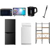 家電セット 寮 オフィス 事務所 新生活家電 7点セット (6kg洗濯機 106L冷蔵庫 オーブンレンジ 32型液晶テレビ 電気ケトル 軽量クリーナー 家電収納ラック)