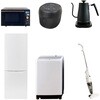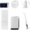 用途寮や事務所、休憩室などに。会社 オフィス 事務室 休憩室 仮眠室 ラウンジ 給湯室 寮 合宿 施設 宿泊 民泊 ホテル 旅館 宿舎 新生活 引越し 単身赴任 大学入学 スターターセット 家電セット 冷蔵庫 洗濯機仕様【オーブンレンジ】幅48.5×奥行37.6×高さ30.2cm●容量18L、フラットテーブル●高周波出力:650W(60Hzのみ)/500W/200W相当【冷蔵庫】幅50×奥行56×高さ142.2cm●容量:173L(冷蔵室121L/冷凍室52L)●年間消費電力量:250kWh/年(50Hz/60Hz)【掃除機】スティック時サイズ:幅24×奥行13×高さ111cm●ハンディ時サイズ:幅10×奥行10.5×高さ48cm●スティック&ハンディの2WAY●吸込仕事率:40W【洗濯機】幅60×奥行59.5×高さ94.5cm●容量:8.0kg(洗濯時)、1.5kg(風乾燥時)●8つのコース搭載(標準・毛布・おいそぎ・ドライ・ソフト・つけおき・部屋干し・槽洗浄)【炊飯器】幅21.5×奥行25.8×高さ20.8cm●炊飯容量:3.0合炊き●11種の炊き分けメニュー:白米ふつう、白米やわらかめ、白米かため、省エネ、早炊き、お湯炊き、パン、玄米、雑穀米、おかゆ、炊込み【電気ケトル】幅28.5×奥行18×高さ22.5cm●容量:800ml●温度設定範囲:60-100度の間で1度単位で温度調整可能間口(mm)500保証期間1年定格内容積(L)173内容量1セット