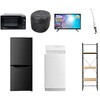 家電セット 寮 オフィス 事務所 新生活家電 7点セット (6kg洗濯機 106L冷蔵庫 電子レンジ 炊飯器 32型液晶テレビ スティッククリーナー 家電収納ラック)