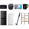 家電セット 寮 オフィス 事務所 新生活家電 8点セット (6kg洗濯機 106L冷蔵庫 電子レンジ 炊飯器 32型液晶テレビ 電気ケトル 軽量クリーナー 家電収納ラック)