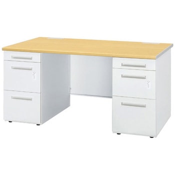 天板2ヶ所のコードホールから配線できる、コードホール式デスクです。コードホールのカバーは落とし込み式で、机上面との段差が少ないフラットなデザインです。ダブルサスペンションレール引出しで、引出の奥まで引出せ、収納しやすく、引出し内が有効に利用できます。ダイヤル錠タイプ。4桁のダイヤルナンバーで施錠管理できるキーレスタイプのデスクです。A4ファイルボックス5個分の収納量があります。