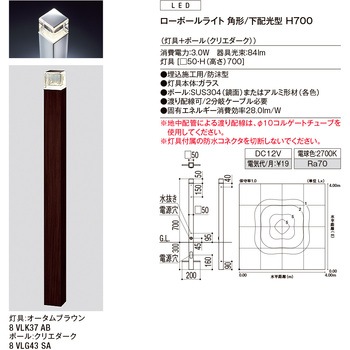 灯具:ガラス、ポール:SUS304(鏡面)またはアルミ三形材