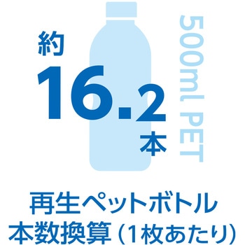 再生PET素材100%の「BOTTLE TECH」シリーズ。再生ペットボトルの本数に換算すると、製品1枚あたり約16.2本に相当
