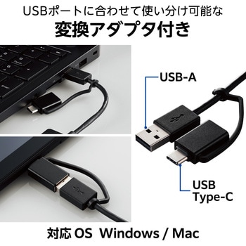 用途USB-AポートにもUSB Type-C(TM)ポートにも接続できる、変換アダプター付きUSB 5Gbps(USB3.1(Gen1))ハブです。