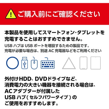 ※本製品はUSBポートを増設するための製品です。本製品を使用してスマートフォン・タブレットを充電することはおすすめできません。