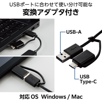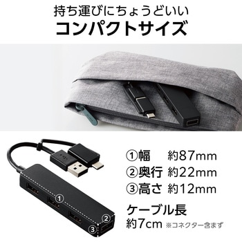用途USB-AポートにもUSB Type-C(TM)ポートにも接続できる、変換アダプター付きUSB2.0ハブです。