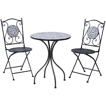 屋外のインテリアとして。 モザイクテーブル 3点セット モザイクテーブル 2人掛け 折りたたみ 屋外 セメント モザイク チェア 2脚セット 庭 ベランダ ウッドデッキ