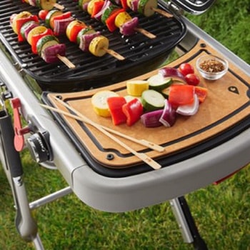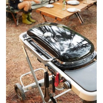 一体型折りたたみ式ポータブルカート。このグリルさえあれば、パーティの主役を飾ることも、BBQを 日常的に手軽に楽しむこともできます。広いグリルエリア(2065cm2)。ホーロー加工された鋳鉄製調理用焼き網。折りたたみ時のふたの自動ロック機能。ふた内蔵型温度計。取り外し可能なオイルキャッチパン。グリル部一体型サイドテーブル。圧電式点火装置(乾電池不要)。