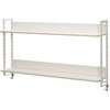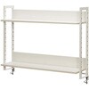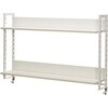 机上空間に収納スペースを増設できる上置ハイシェルフ。天板厚み15~36mm、設置箇所奥行き40mm以上のデスクに取り付け可能。2段の棚は可動ピッチ51mmでお好みの高さに設置してご利用いただけます。※必ず壁付けでご使用ください。
