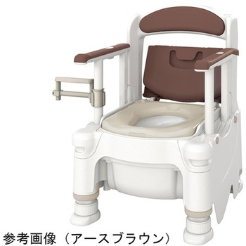 3つのサポートでゾウの鼻のように長く使えます。移乗動作に合わせて、ひじ掛けが0cm~30cmの2段階に調節可能。姿勢保持グリップや片手で切れるペーパーホルダーがあるので、一人で排泄が可能。少ない水で使用できるバケツ(節水バケツ)や樹脂製ポータブルトイレ初の自動ラップ機能搭載により片付けをサポート。