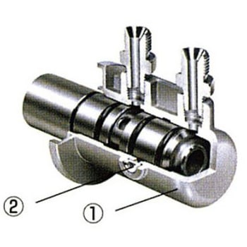 ★インレット(分配器)(1)部分は高精度アルミダイキャスト製。また、フィルター付安全ガス抜孔(2)を設け、安全性に優れています。(サブ画像参照)