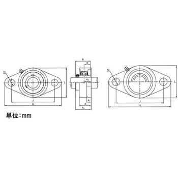 ●呼び番号MUCFL形:201●サイズ(mm):H/113、L/60、A/25.5、J/90、N/12、A1/10、A2/15、A0/33.3、B/31、S/12.7●材質:本体/ステンレス鋳鋼 ボール/ステンレス鋼●止めねじ付●円筒穴形●ステンレスシリーズ