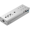 Festo DGST シリーズ複動ミニスライドアクチュエータは、両端に伸縮式クッションが付いていて、調節不可で、近接センサでエンドポジションを調整できます。アクチュエータストロークは 125 mm で、動作圧力は 8 バールです。ピストン径: 16 mm ドライブユニット - ヨークの