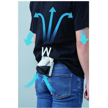 ミストとファンを組み合わせて、人体の表面温度を下げるウェアラブル装置です。