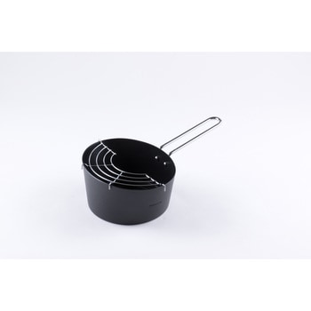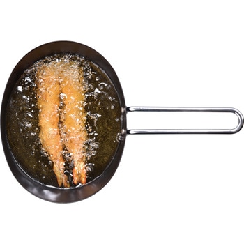 手軽に天ぷらを楽しむことができるコンパクトな天ぷら鍋。横長の形状で、エビフライなど長い食材もすっぽり入ります。ちょこっと揚げる時でも経済的に揚げ物ができます。揚げたての食材をそのまま油切りできる、フチに引っ掛けるタイプの揚げアミが付いています。