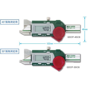 測定しにくい面取寸法の高精度な測定を実現します。45°の面取寸法(C面取り)の測定に使用可能です。円筒の内側面取の測定も可能(円筒内径Φ9mm以上)です。別売のBluetoothBOXに対応、測定値をパソコンへワイヤレス送信が可能です。精度保証のため、検査時の数値を記した検査表付です。プリセット機能付です。ホールド機能付です。オートオフ機能付(約20分)です。