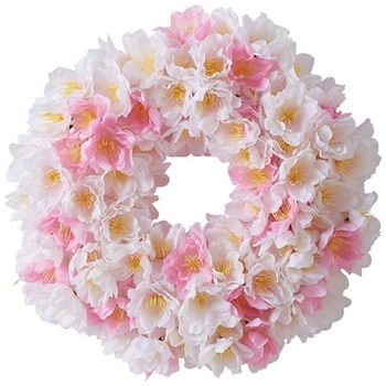 ピンクや白の桜の花びらがいっぱいあしらわれた春にぴったりのリースです