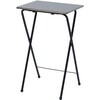高さがあって使いやすい 折り畳み式のミニテーブル ハイタイプ。キッチンカウンターに合わせた高さ85cmタイプ。下が空いて使いやすいオープン仕様。天板は熱いものも置けるステンレス張り。天板耐熱温度は約200℃で熱いものも置ける。折りたたみ時は狭いところでも収納可能。