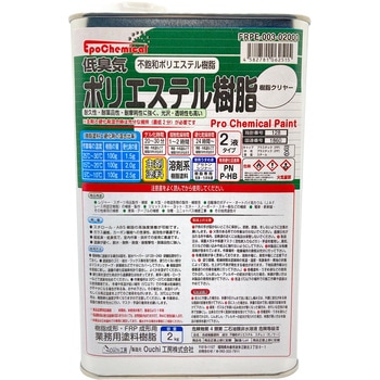 スチレン拡散量が1/3以下で硬化後の臭いが少ない積層、脱泡の作業性が高く硬化後の収縮も少なく仕上がりも綺麗耐水・耐候・耐酸性に優れ、鉛・ヨット・スキー・スノーボード補修に。積層作業時のパラフィン削除作業がいりません。