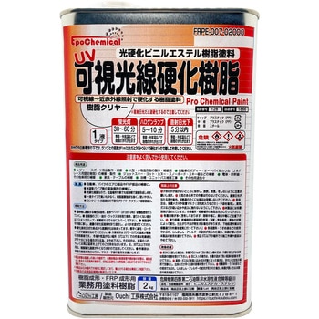 自動車、バイクのエアロ部品やFRP部品の補修に。水道管パイプなどの緊急箇所の補修に。光硬化樹脂なので低温場所作業でも短時間で塗膜形成します。1液タイプで臭いも少なく、樹脂塗膜強度も強く、使いやすい。コンクリート床面塗装の下塗りプライマーやクラック補修塗装に最適蛍光灯や白熱電球の下では、ランプとの距離が1m以内だと30分程度で硬化するので離して作業してください。