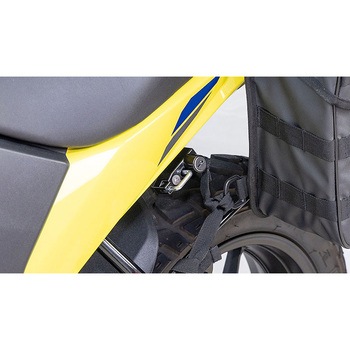 あれば便利なアイテムで必須なのがヘルメットロック!多くの声に応え、Vストローム250SX用がついに登場!当メーカーバッグサポートとの兼ね合いも考え、使い勝手の良い場所に設置しました。