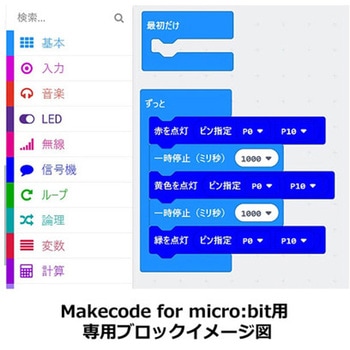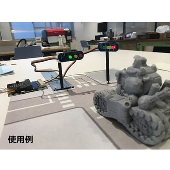 micro:bitでコントロールできる信号機モジュールmicro:bitで道路信号の動きを再現できるモジュールです。Groveコネクタを搭載し、Groveインターフェースで接続できるため、micro:bitに複数の信号機モジュール接続して駆動させることができます。交差点などの動作を簡単に実現できます。GitHubに用意されている専用ブロックを使用して、本モジュールを制御することもできます。