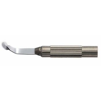 円形の中心から両面刃付けされたラウンド刃先は、強膜トンネルフラップ作成に適しています。専用ハンドルが必要です。強膜トンネル作製に使用できる円形のラウンドナイフベント角度は45度微細手術用替刃メスハンドルに装着してご使用ください。