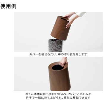 木をフェイクしたゴミ箱カバーを被せるだけで中のポリ袋を隠してくれるゴミ箱"TUBELOR HOMME"の木目柄。木目柄のテイストをしっかりフェイクしクラシックなインテリアにも遜色ない仕上がりに◎ボトム本体はに持ち手の穴があるので、カバーとボトムを片手で一緒に持ち上げ移動できます。ゴミ袋は縦 500×横 350mm以上のものが、使い勝手良くご利用いただけます。