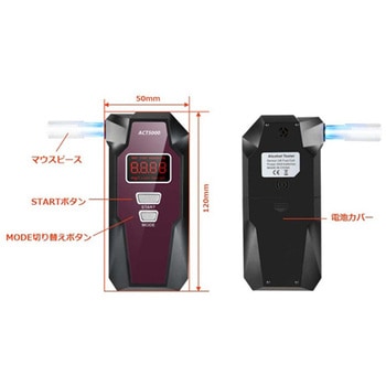 仕様●センサータイプ:燃料電池センサー●データ記録:直近50回分を保存●センサー寿命:50000回または3年どちらか早い方●反応時間:3-5秒●吹きかけ時間:約5秒●測定範囲:0.000 ~ 2.000mg/L●センサー精度:呼気1リットルあたりのアルコール量が0.25mg/Lのとき±0.03mg/L; 0.40mg/L以上のとき±10%;●分解能:0.005mg/L●マウスピース:10個付属●ディスプレイ:1.7インチVAパネル●使用温度範囲:0℃~50℃●保管温度範囲:-20℃~70℃●電源:単4アルカリ電池/2本(電池別売り)●本体寸法:120×50×25mm●本体重量:電池含まず/85gアズワン品番65-8654-29内容量1ケース(50個)