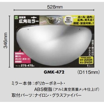 ●サイズ(mm):275×475●曲面:タテ/220R ヨコ/340R●鏡面材質:ポリカーボネイト、ABS樹脂(アルミ真空蒸着メッキ仕上げ)●材質:取付パーツ/ナイロン、グラスファイバー●重量:744g●設置可能場所:壁●凸面●室内専用●取付金具付●壁面用(曲面率 タテ220R/ヨコ340R)