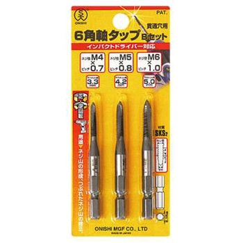 ●タップサイズ:M4×0.7・M5×0.8・M6×1.0●全長:70mm●材質:SKS_2●六角シャンク:1/4"(6.35mm)●溝長:20mm●推奨下穴径:3.3mm・4.2mm・5.0mm●用途:ネジ山の形成・つぶれたネジ山の修正用●被削材:鉄・アルミ・真鍮●喰い付きピッチ:3.5P●JIS等級:3級●インパクトドライバー対応●貫通穴用