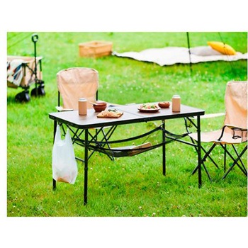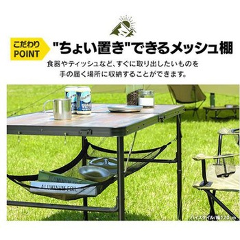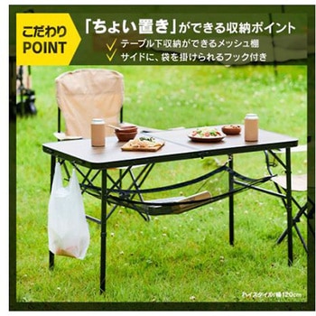 ●使用時サイズ(収納時サイズ)W×D×H(mm):1200×600×700/350(635×75×625)●重量(kg):4.3●材質:天板/合成樹脂化粧繊維板(メラミン樹脂)フレーム/アルミニウム(エポキス樹脂塗装)●耐荷重:約30kg●高さ調節ができる2WAYタイプ