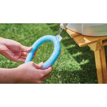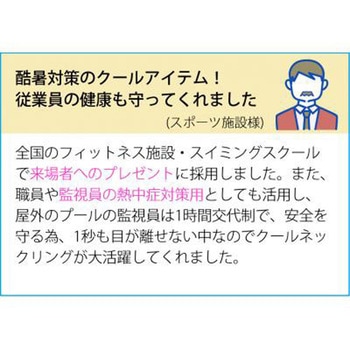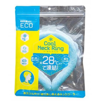 首元じんわりひんやり!着用1時間後もひんやり感キープのクールなネックリング!約28℃以下で自然凍結するPCM素材を使用。冷凍庫はもちろん、水道の流水でも凍結するので出先での再凍結も簡単です。