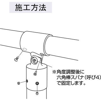 支柱用のジョイントです。手すり棒を左右45°ずつの角度でジョイントする事ができます。