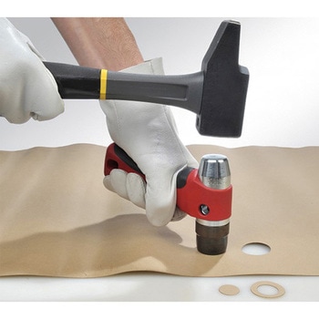 セット内容:ポンチ×19個、ハンドル×1個、センタリングチップ×1個、コンパスカッターΦ330mm×1個、替刃×1枚。チャックハンドル一体型。打ちつけやすいハンマー形状(衝撃吸収仕様)。Φ330mmのコンパスカッター付。2個の刃がハンドルに取付けられる為、一度にきれいなパッキンが作れます。