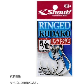 <クダコ>のプレスリング付フック。キャスティングプラグに対応。実績の最強フック「クダコ」をリング付加工。5/0以下のモデルは溶接リング、6/0以上のモデルは高強度プレスリングを装着。スプリットリングでプラグと接続すれば、フックがフレキシブルに動き、フッキング率がアップします。