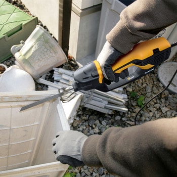 付属品:ブレード2種(剪定刃:EA851SR-1、鉄工刃:EA851SR-2B)、レシプロソーブレード用ホルダー(本体取付)、六角棒レンチ3mm(本体収納)。二重絶縁。ジグソーブレード用ホルダー(EA851SR-10:別売)併用でジグソーブレードもつかめます。庭木・木材から金属・樹脂など、手ノコ感覚で簡単にカット。木工・剪定用と鉄工・ステンレス用のブレード付き。家庭から出る粗大ゴミを小さく”かさ”を減らすことも可能。カットする物に合せて刃物を付け替え。電気の力が手の動きをアシスト。各種木材、合成樹脂、軟鋼材など金属の切断や庭木の剪定に。