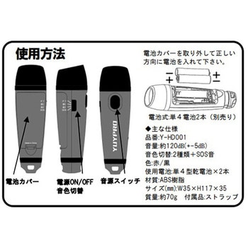 ヘルメットを着けたままでも頭に通るストラップ付。災害、緊急時、スポーツ、工事現場、工場、作業場などで使う場所なら押すだけでビーッと鳴らすことができます。鳴りっぱなしにできるSOS音付。初心者でも使いやすいシンプル設計。(音設定→押す→鳴る)。音量調整機能はついておりません。