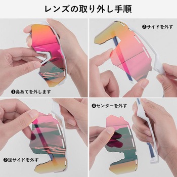 四つのレンズで多機能: スモークレンズ(偏光)、ミラーレンズ(偏光)、イエローレンズ(カラー)、クリアレンズの4枚が付属。一枚で異なる状況に対応できます。