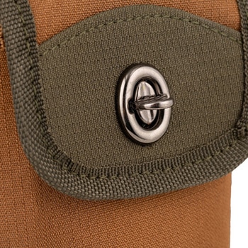 ベルト通しはマジックテープ止の為、着脱が簡単です。スマホ、携帯電話、電子機器等を保護するように設計されたパッド入り。金属製のツイストロック開閉が特徴です。ベルトに掛けたり、ポケットに押し込んだりできる面ファスナーのフラップを備えたデザインです。