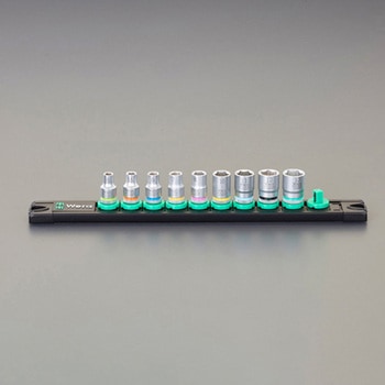 セット内容:9個組。独自のツイストロックにより、ソケットをしっかりと保持し、簡単に取り外せます。サイズごとに色分けされたカラーコードを使用すると、必要な工具をすばやく簡単に見つけることができます。ソケットレールは金属面に傷つけずに一時的に貼り付けることができ、ツイストロック解除機能により、ソケットを確実に取り付け取り外しができます。手締め時に便利なローレット加工。ボールロック付。