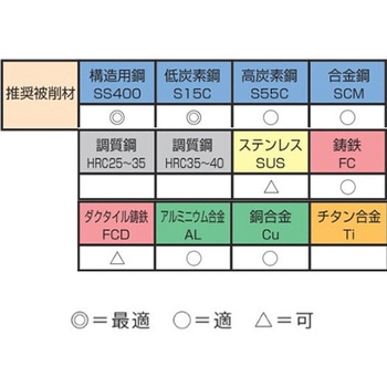 対応:構造用鋼、低炭素鋼、高炭素鋼、合金鋼、鋳鉄、アルミニウム合金、銅合金