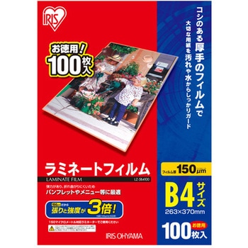 仕上がりのコシが強く、折れ曲がりに強い、厚さ150ミクロンのラミネートフィルム100枚セットです。用紙にツヤと張りを出し、水や汚れからしっかりガードするラミネートフィルムです。厚みがあるため、コシが強く、折れ曲がりにも強い仕上がりです。