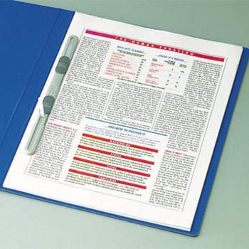A4判S型。とじ具は、廃棄時に表紙と分別廃棄できます。再生ポリスチレン樹脂を使用した押え具とポリエチレン製のとじ具は、焼却時に有害ガスを発生しません。