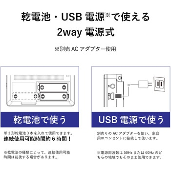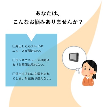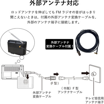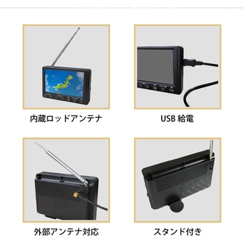 いつでもどこでもテレビ視聴できるワンセグTVラジオです。新機能で外部アンテナに対応しました!ロッドアンテナを伸ばしてもFMラジオの音がはっきり聞こえない時は付属の外部アンテナ変換ケーブルを外部アンテナ端子に接続可能です。●乾電池&USB電源の2WAY電源で使用可能。単3乾電池3本で約6時間の連続使用が可能です。●ポケットサイズながら4.5インチIPSパネル搭載で画面がキレイ。更にチャンネルリストで番組表の確認、字幕や副音声等の切替も可能です。