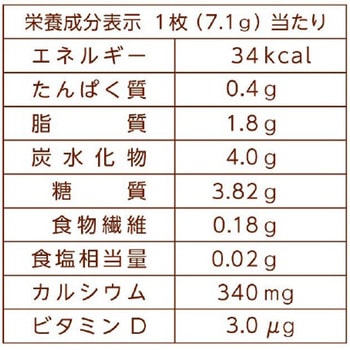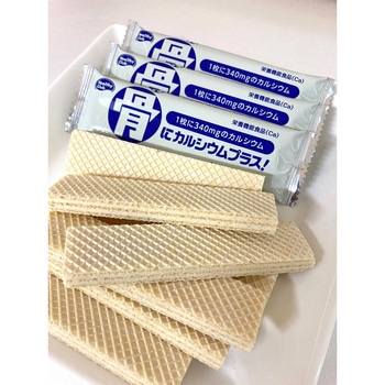 カルシウムが手軽に摂れるバニラ味のウエハースです。【カルシウム配合】1日の摂取目安量1枚あたり340mgのカルシウムを配合。加えてカルシウムの吸収を助けるビタミンDも配合しています。カルシウムが不足気味のお子様からご高齢の方まで幅広い層の方にオススメの商品です。【「ロカボ」商品】1枚あたりの糖質量を10g以下に抑えたロカボ対応商品です。【バニラ味のウエハース】やさしい味わいのバニラ味ウエハースです。