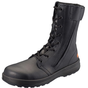 JIS T8103 (ED-P/C2) CI/S/P3/F2/HI1合格。釘や鋭利な物から足裏を守る「踏抜き防止板」内蔵。JIS規格の「耐踏抜き性(P)」合格。夜間業務でも安心 かかと部の「再帰反射材」。着脱がスムーズにできる「外チャック」付。「サスペンションシステム」障害物を踏んだ時、衝撃吸収するソールの構造。ゆりかごの様に快適「クレイドル・インソール」。高温耐熱性能 ソールからの伝熱に対して足を保護する高温耐熱性(区分2)。(独法)労働安全衛生総合研究所「安全靴・作業靴技術指針」の性能と等級。耐油性と耐薬品性(あらゆる薬品に対して耐久性を有するものではありません)のソール。静電タイプ。反射材付。