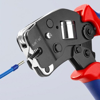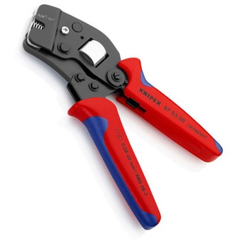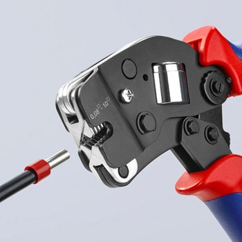 正面からしっかり圧着できます。最大2.5mm2のエンドスリーブを横から平行に通すことができます。最大2×4mm2または2×AWG 12のすべてのツインエンドスリーブにとくに合います。DIN 46228 1部+4部によるエンドスリーブの圧着。希望するエンドスリーブのサイズに自動的に調整:間違ったダイの使用による圧着ミスがありません。フェルール端子を手前からツールに差し込みます。強制ロック(解除可能)により安定した圧着作業が可能です。圧着力は工場で精密に調整されています(較正)。トグルレバーによって力を増幅し、作業の疲労を少なくします。持ちやすく軽いので、快適に使えます。高級クロムバナジウム電気鋼、油焼き入れ。