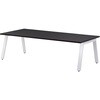 ハの字型で安定感抜群の脚デザインです。天板は耐水・耐熱性に優れた高圧メラミン化粧板で傷が付きにくくなっております。脚端にはレベル調整用のアジャスターが付いています。国産の高級テーブルの為、安心設計です。抗菌指紋レス:指紋などの汚れが目立ちにくいメラミン化粧板です。